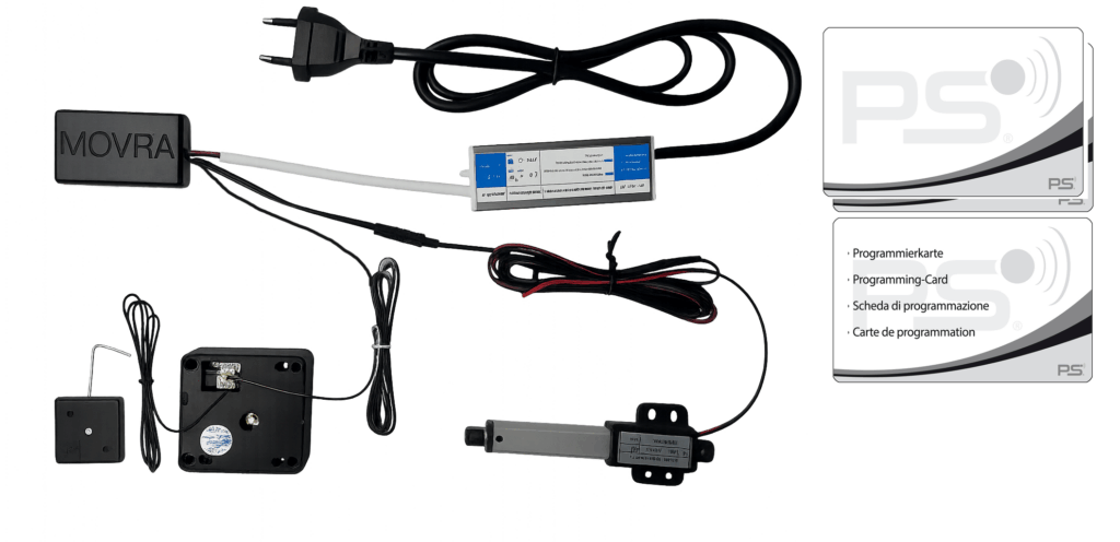 I cassetti possono essere sbloccati tramite Bluetooth o scheda RFID e si aprono automaticamente di 5 cm, senza maniglia o pulsante. Elegante e raffinato. MOVRA è la nuova unità di controllo che porta funzionalità e design a un nuovo livello. Dotato di un’elettronica all’avanguardia, di un cavo di collegamento da 1,5 m per le serrature, di un trasformatore affidabile e di un potente motore lineare con un cavo lungo 1,8 m, MOVRA offre la massima flessibilità e una facile integrazione. Soprattutto nei negozi di lusso, MOVRA garantisce un aspetto minimalista e un’esperienza d’uso esclusiva. Per i falegnami e gli architetti d’interni, questa tecnologia apre una completa libertà di design, poiché non richiede elementi di comando visibili.