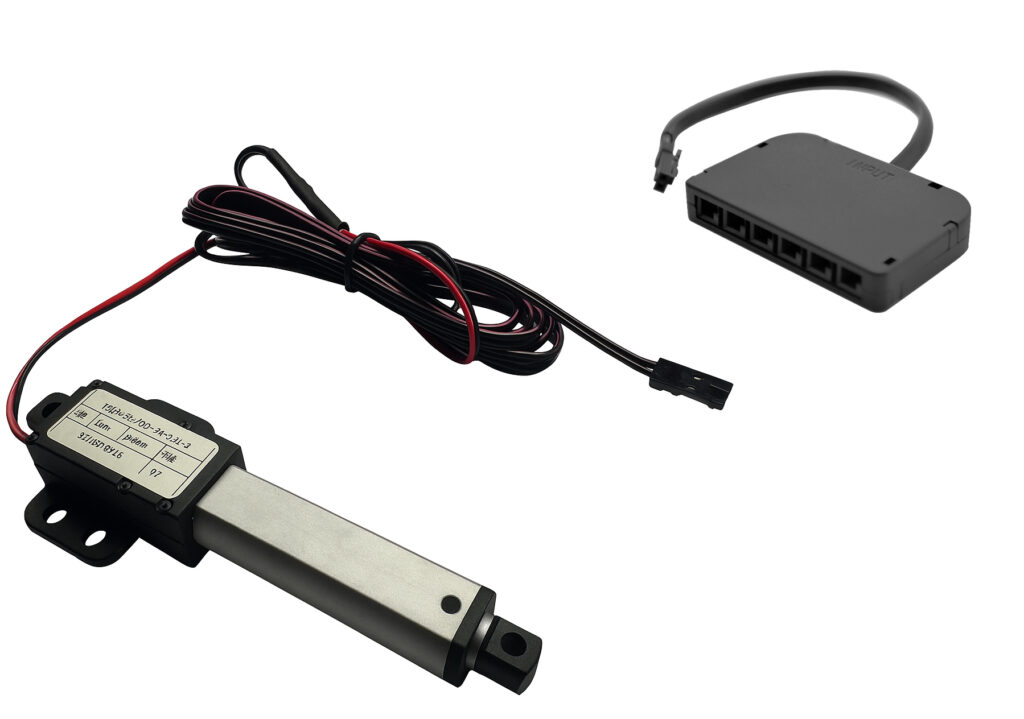 1 motore lineare con corsa di 50 mm, velocità di 30 mm/s, forza di 20 Nm e cavo di 1,8 m.